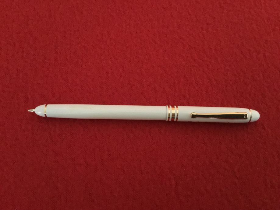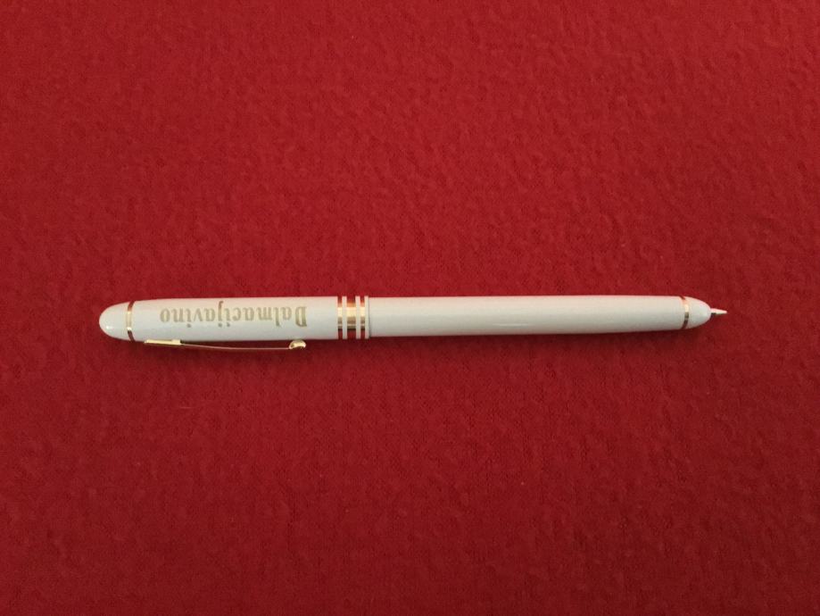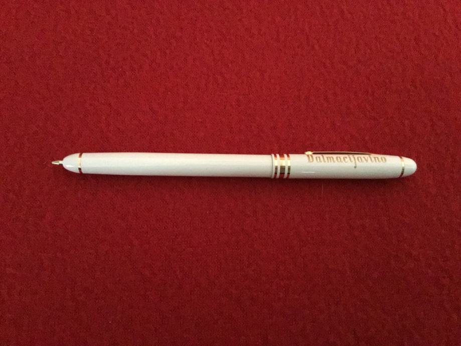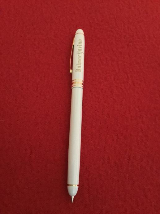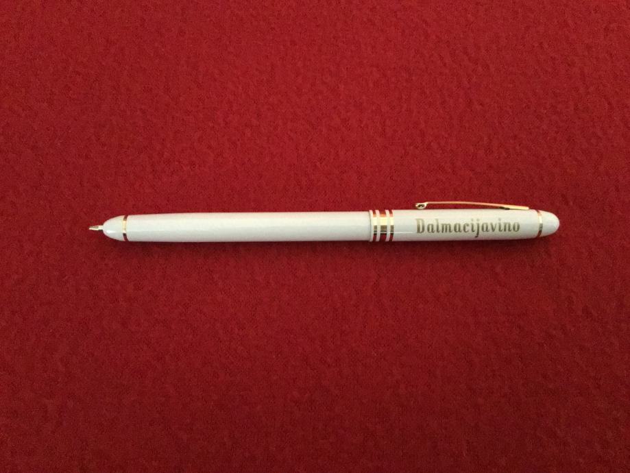 Stara kemijska olovka, bijelo/zlatne boje, s logom Dalmacijavino.