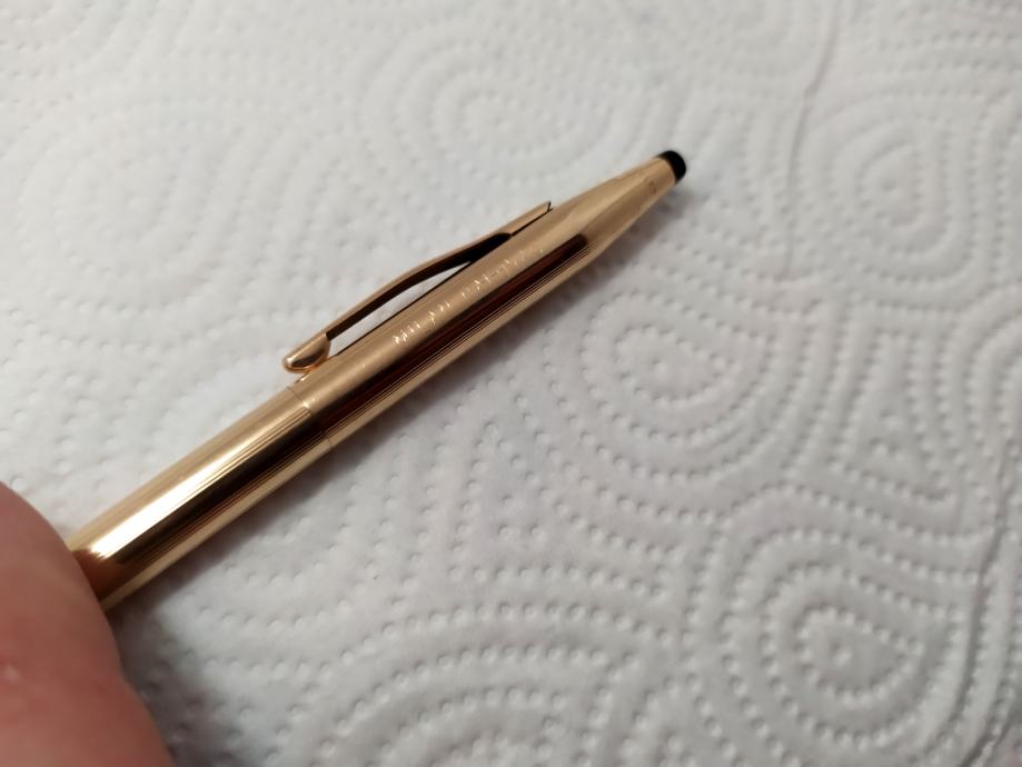 Na vrhu poklopca olovke je ugraviran "Cross"