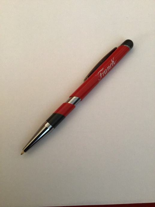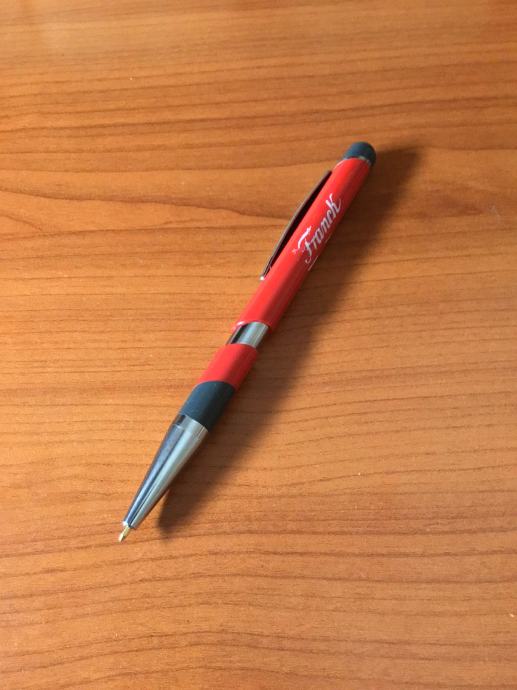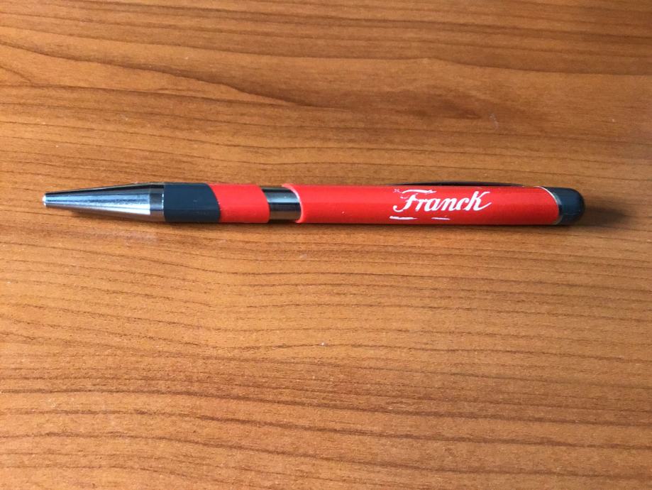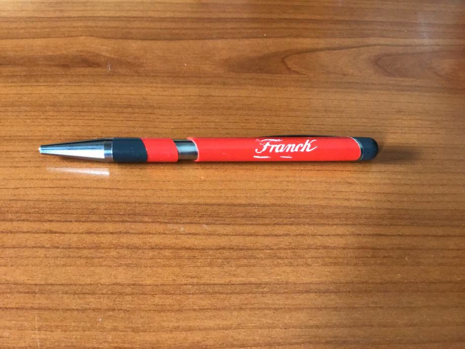 Stara kemijska olovka, crveno/sive boje, s logom Franck.