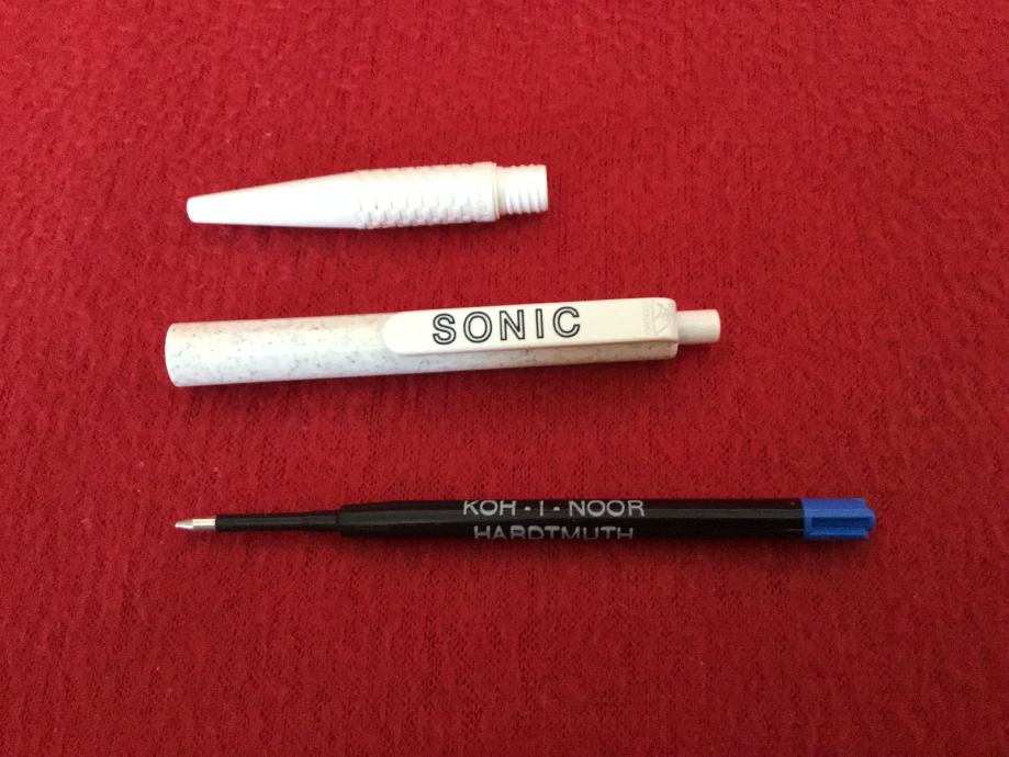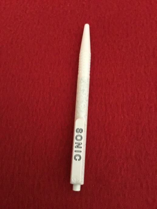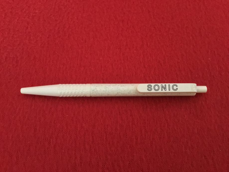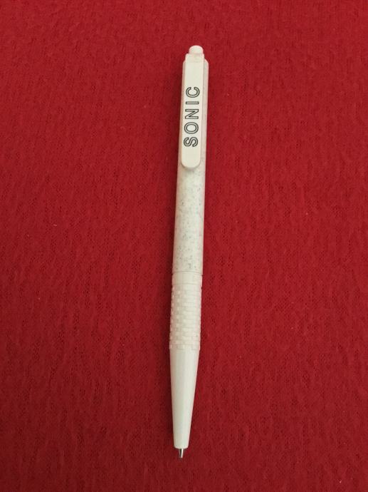 Stara kemijska olovka, sive boje s logom SONIC.