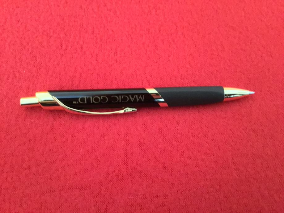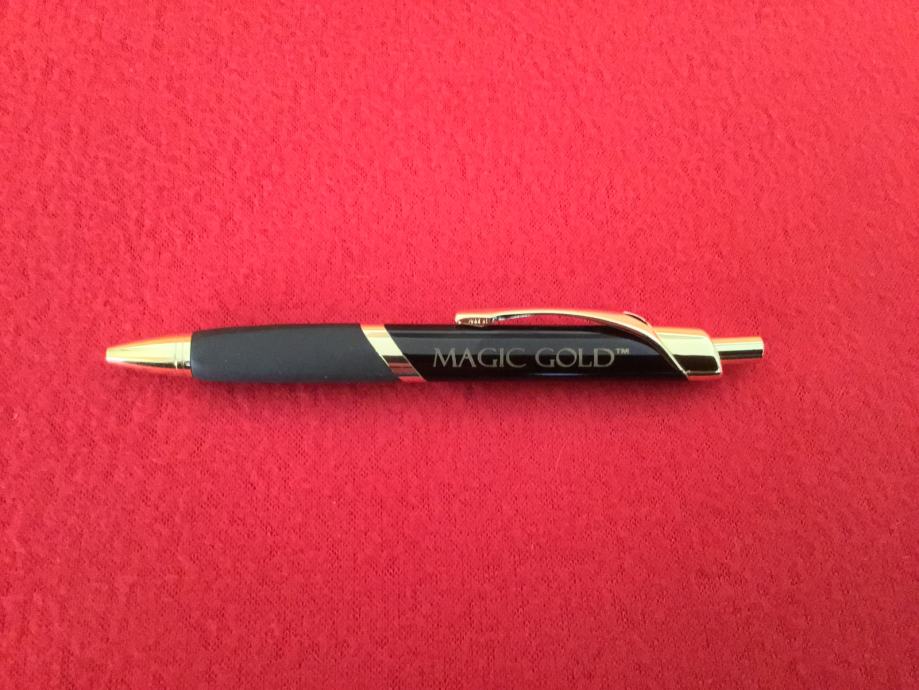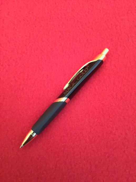 Stara kemijska olovka, zlatno/crne boje, s logom MAGIC GOLD.