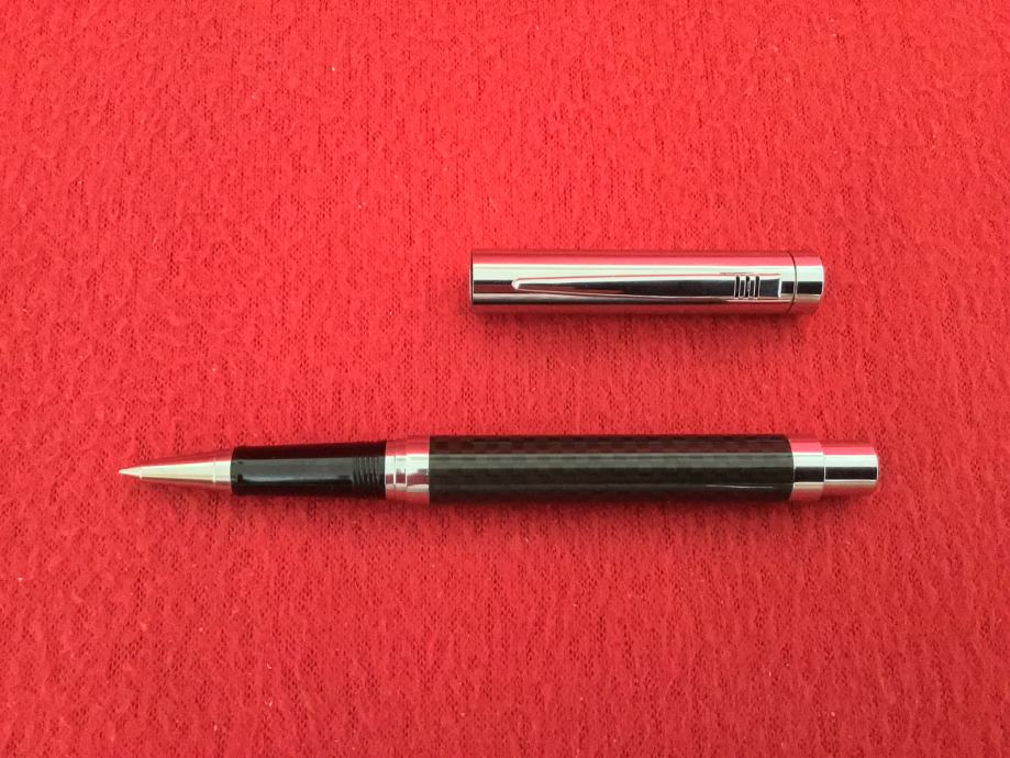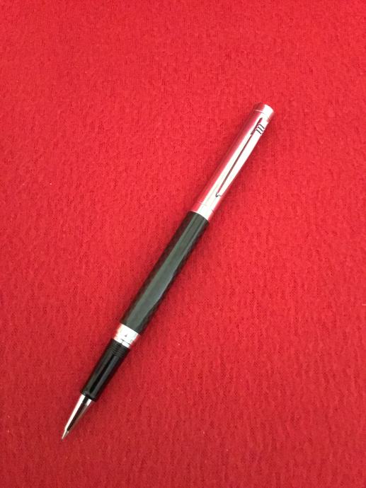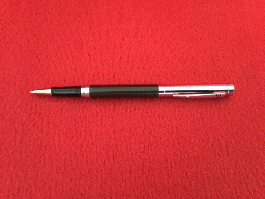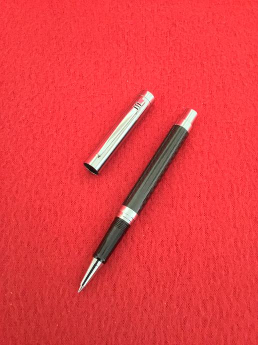 Kemijska roler olovka crno/kromirana s metalnim kromiranim poklopcem.