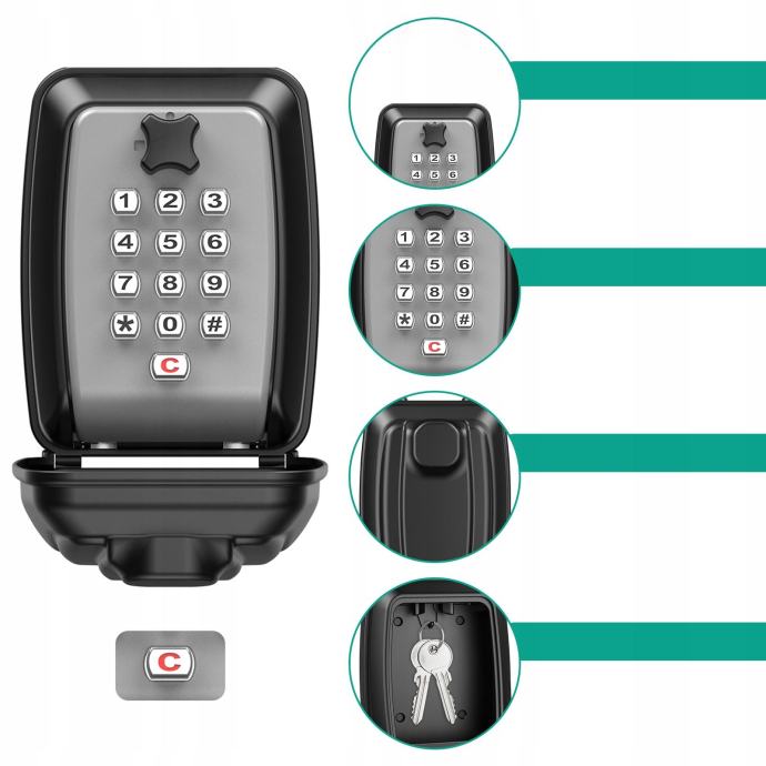 Izdržljiva ladica za ključeve koja sve ostalo čuva. 12-znamenkata kombinirana brava koja vam omogućuje postavljanje jedne od mnogih kombinacija. Vodootporni poklopac omogućit će produženu upotrebu proizvoda.