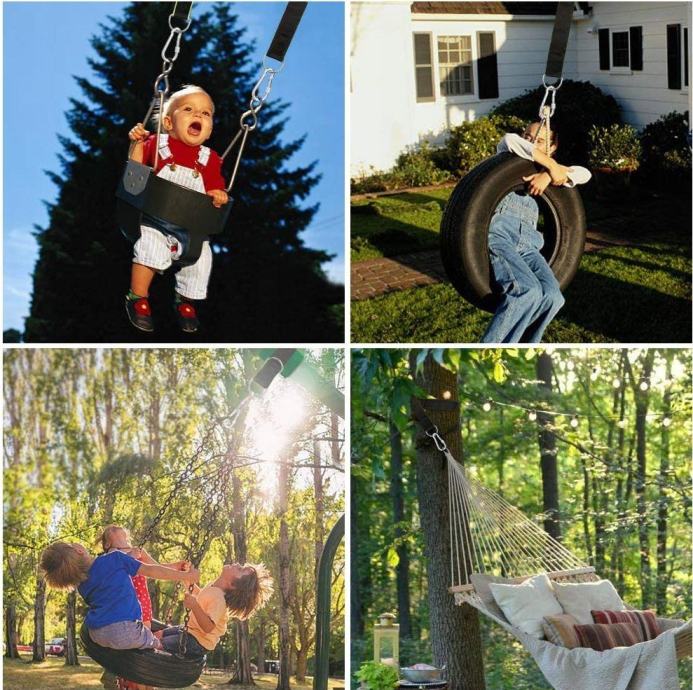 Univerzalna uporaba- univerzalnost dizajna znači da se set komplet može uspješno koristiti za pričvršćivanje viseće mreže, kao i za sigurno pričvršćivanje ljuljačke ili viseće mreže. Komplet je odabran tako da možete objesiti viseće mreže ili 2 ljuljačke.