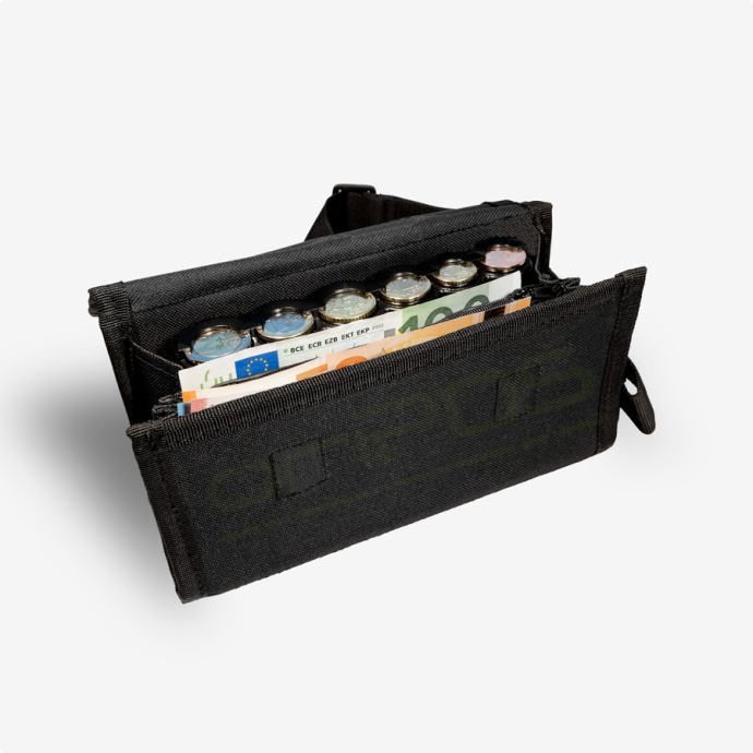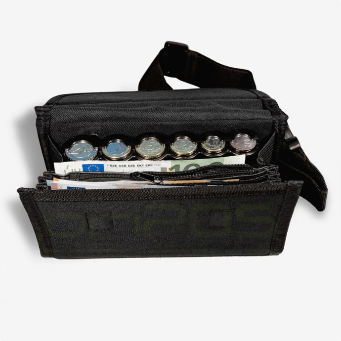 Konobarski novčanik za Eure OriPos, crni spremnik 6 Euro kovanica, zip
