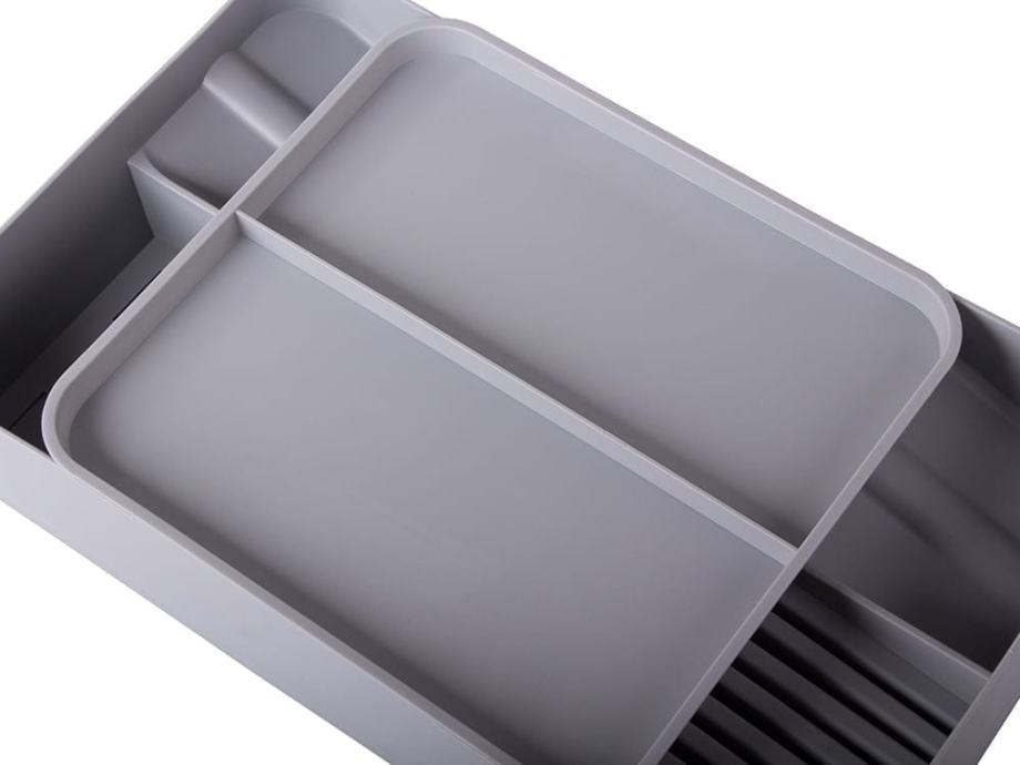 Zahvaljujući pažljivo dizajniranoj distribuciji i odjeljku, umetak omogućuje optimalni raspored pribora za jelo na pravim mjestima. Svaka vrsta pribora za jelo naći će svoje mjesto, pa ih je lako razdvojiti i organizirati. Sada će sve vilice biti zajedno, žlice će biti odvojene od noževa, a mali uređaji poput boca ili čepova imat će svoj prostor.