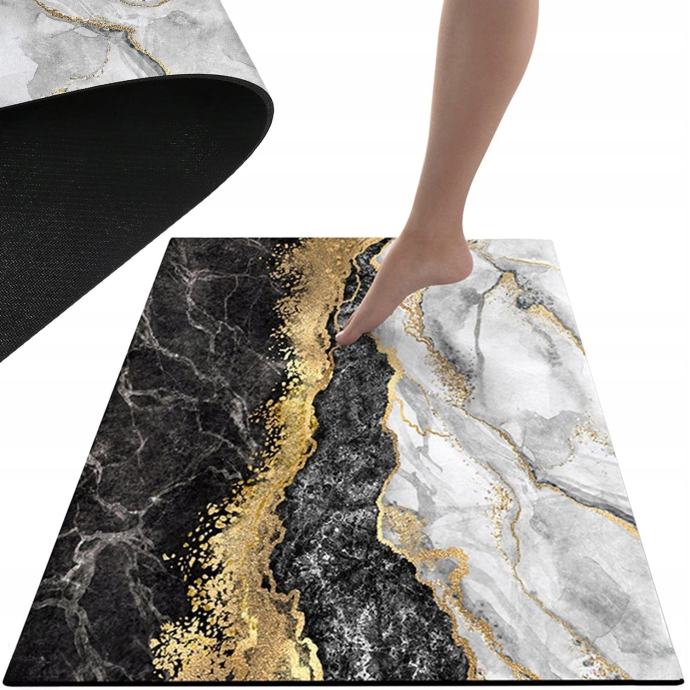 Kupaonica koja se može praviti bez klizanja zlatnog mramora od 80x50 cm savršena je kombinacija funkcionalnosti i stila za vašu kupaonicu. Izrađen je od visokokvalitetnih materijala koji pružaju udobnost i izdržljivost. Obloga bez klizanja sprječava pomicanje tepiha, osiguravajući sigurnost i stabilnost na podu kupaonice. Zlatni mramor dodaje moderan i suvremeni dodir vašoj kupaonici, dok je tepih koji se može pere, što olakšava održavanje i čišćenje. S dimenzijama od 80x50 cm prikladna je za većinu standardnih kupaonica i dat će nogama ugodan i topao osjećaj. Ovaj tepih za kupaonicu odlična je kombinacija praktičnosti i estetike koja će vašu kupaonicu pretvoriti u udoban i atraktivan prostor.