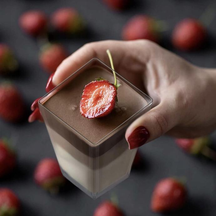 Square PVC 120ML šalice za desert u paketu od 50 komada savršen su izbor za bilo kojeg ljubitelja deserta ili profesionalnu kuhinju. Šalice su izrađene od kvalitetnog PVC materijala koji pruža dug životni vijek i pouzdanu upotrebu. Šalice su prikladne za različite vrste deserta kao što su puding, kreme, panakota, mous i drugi.