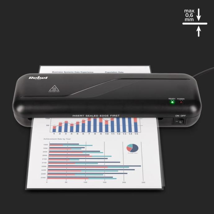Laminator pobunjeničkog papira omogućuje vam da osigurate dokumente s maksimalnom debljinom od 0,6 mm. Zahvaljujući tome, možete laminatirati i tanke ploče i one koje su malo deblje.