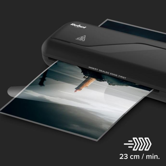 A4 pobunjenički laminator omogućit će vam da pokrenete postupak plastifikacije bez nepotrebnog čekanja, a uređaj će vas obavijestiti s pravim zvukom kada bude spreman za rad. Važno je da brzina laminacije iznosi 23 cm / min. Omogućuje učinkovito osiguranje mnogih dokumenata u kratkom vremenu.