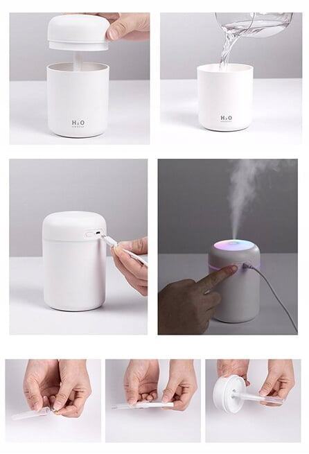 Proizvod karakterizira mala veličina i vrlo univerzalna shema boja. Za razliku od nekih hidratantnih sredstava, možete ga staviti na stol i koristiti kao element prostora. Vrh uređaja može se osvijetliti u mnogim bojama koje se mogu prilagoditi za ukrašavanje sobe ili raspoloženja.
