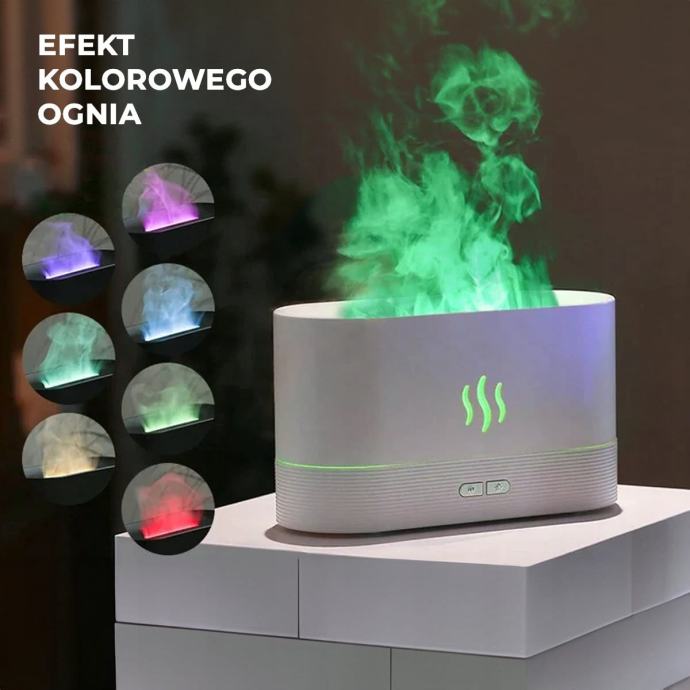 Kompaktni i energetski učinkovit ovlaživač s šarenim RGB LED pozadinskom osvjetljenom koji oponaša plamen.