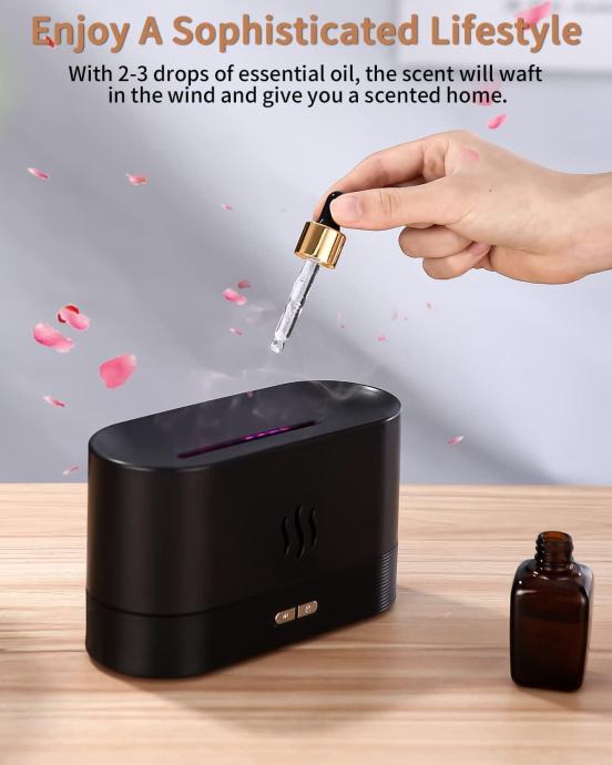 Pored toga, ovaj proizvod također omogućuje upotrebu esencijalnih ulja. Izgrađeni spremnik ulja omogućuje vam dodavanje nekoliko kapi omiljenog esencijalnog ulja, koje će potom u sobi otpustiti ugodne mirise. To može stvoriti opuštajuću atmosferu, poboljšati spavanje ili jednostavno stvoriti ugodnu atmosferu tijekom aktivnosti opuštanja poput joge ili meditacije.