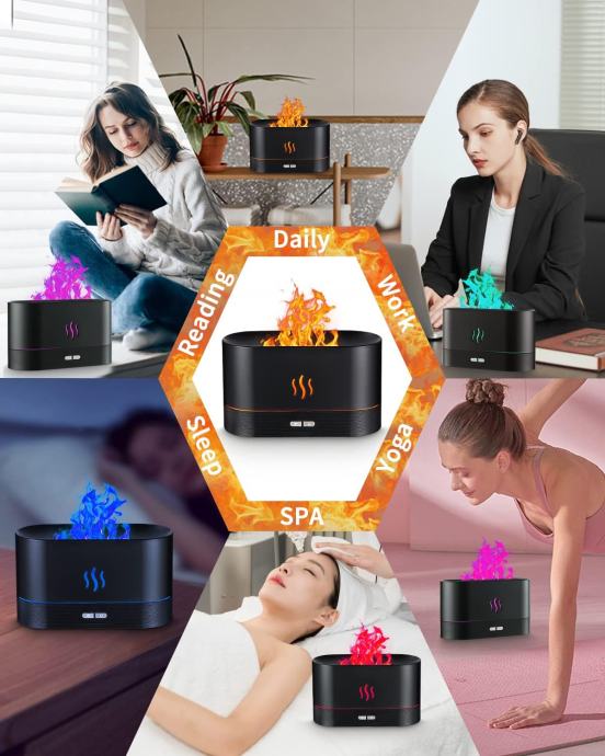 Pored toga, ovaj proizvod također omogućuje upotrebu esencijalnih ulja. Izgrađeni spremnik ulja omogućuje vam dodavanje nekoliko kapi omiljenog esencijalnog ulja, koje će potom u sobi otpustiti ugodne mirise. To može stvoriti opuštajuću atmosferu, poboljšati spavanje ili jednostavno stvoriti ugodnu atmosferu tijekom aktivnosti opuštanja poput joge ili meditacije.