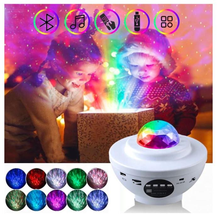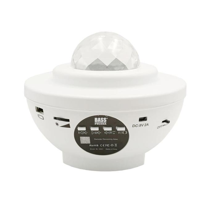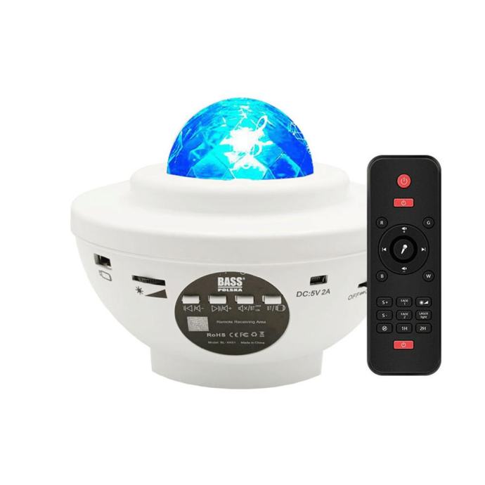 Dječja svjetiljka Star projektor je sjajna interaktivna igračka koja će biti odličan poklon i za dijete i za veće dijete. Dječji projektor Bass Polska može se koristiti kao noćna svjetiljka, projektor zvijezde i Waves i Bluetooth zvučnik. Pokažite šarenu galaksiju na zidu ili stropu dječje sobe! Promijenite rođendan svoje bebe u nezaboravan svemirski izlet! Tretirajte svojoj djeci jako zabavno za promjenu i miješanje boja zvijezda! Dječji projektor ima četiri obojena svjetla (plava, crvena, bijela, zelena). Omiljene pjesme svog djeteta možete svirati povezivanjem s zvučnikom putem Bluetooth -a.