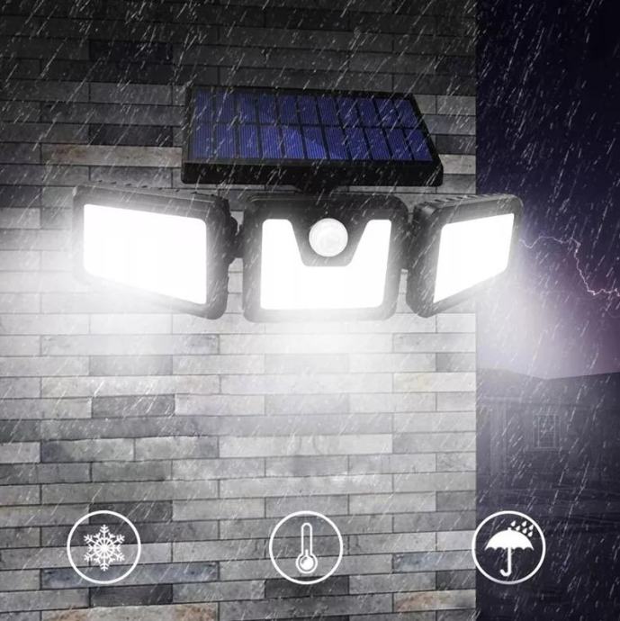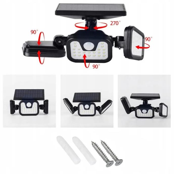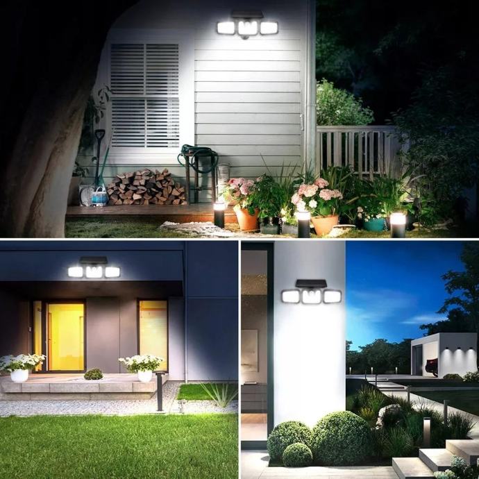 Uređaj je opremljen s tri reflektora koji se mogu postaviti u bilo kojem položaju kako bi precizno osvijetlili sve uglove i praznine na vašem imanju.