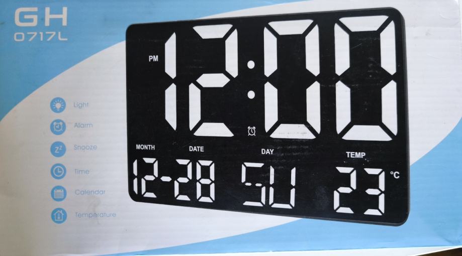 LED zidni sat, alarm, daljinski, kalendar, termometrom...