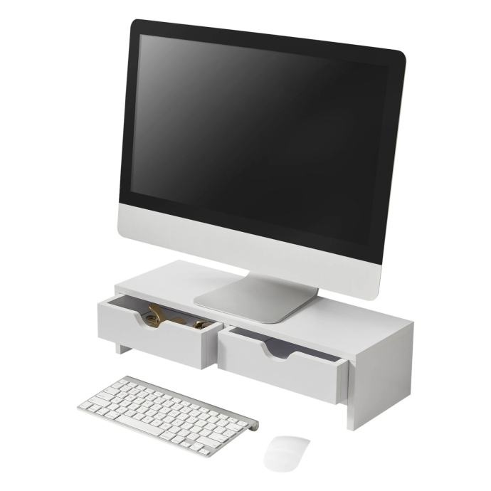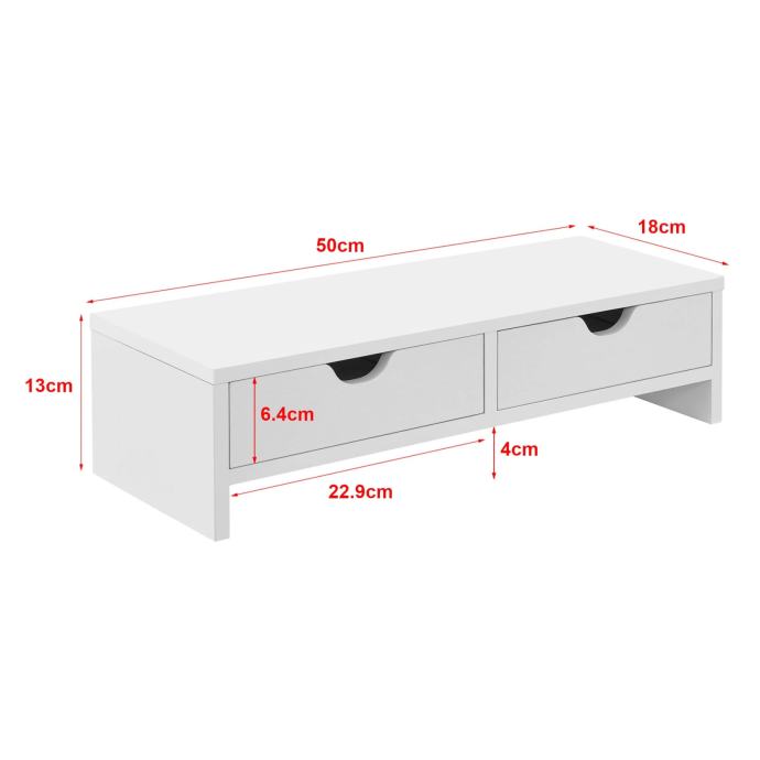 Sa svojim dimenzijama od 50 x 18 x 13 cm stalak je dovoljno prostran da primi različite veličine monitora, prijenosnih računala ili druge opreme. Podizanje zaslona smanjuje naprezanje očiju, leđa i vrata te tako pridonosi ugodnijem radnom okruženju. Dobivanjem dodatnog prostora za pohranu svoje radne materijale možete posložiti na organiziraniji način na svom stolu, povećavajući učinkovitost i produktivnost na poslu. Osim toga, stalak za monitor također je estetski privlačan dodatak vašem radnom prostoru koji se može koristiti i praktično i dekorativno.