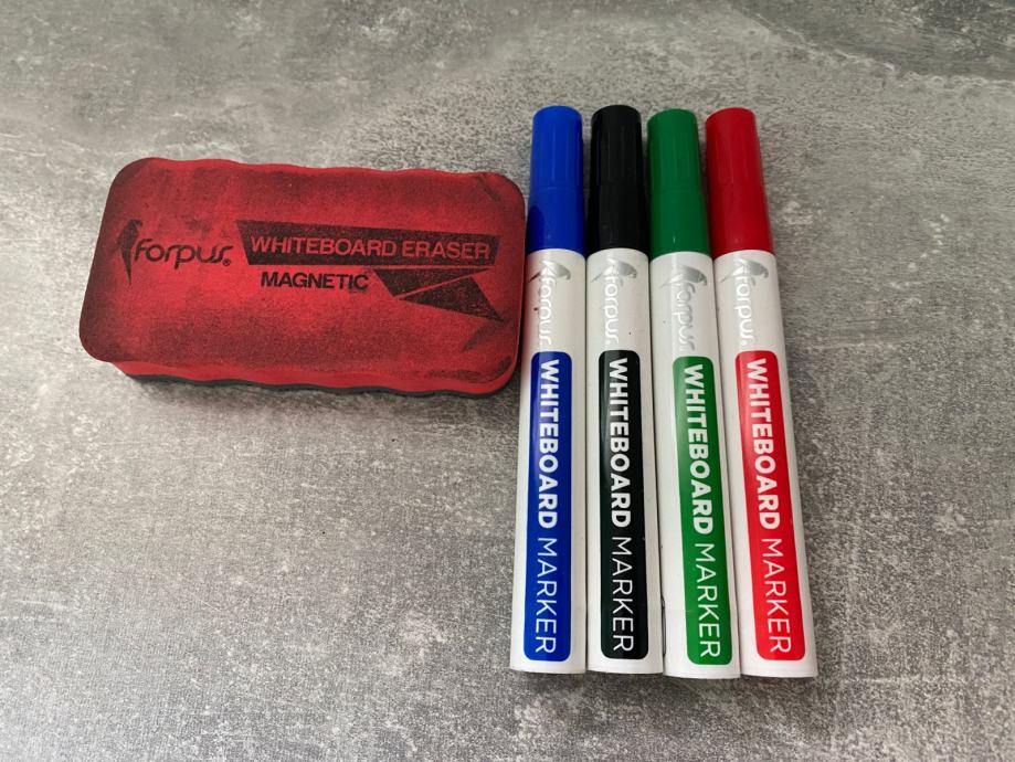 Uz plocu idu 4 markera za pisanje i spuzvica za brisanje.