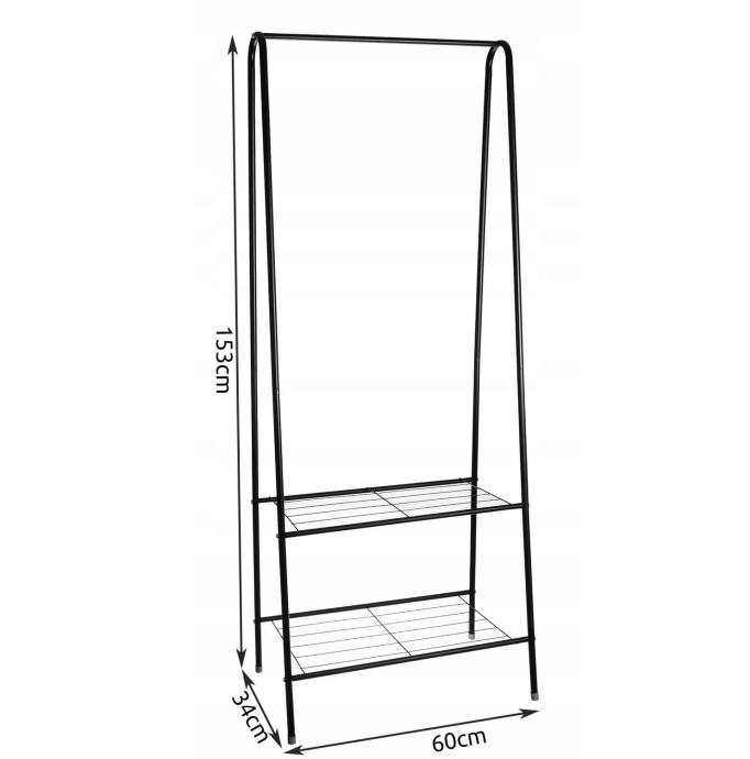 Specifikacija - cijev: željezo; Promjer cijevi: 16 mm; dvije police za cipele; Dimenzije: 153 x 60 x 34 cm; Težina: 1,9 kg