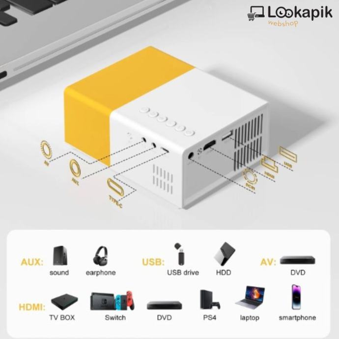 Kao što je prikazano na slici, povežite adapter za napajanje (DC 12V/2A). Indikator na projektoru će se upaliti nakon što stavite adapter.