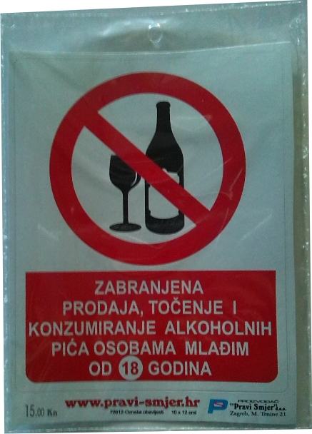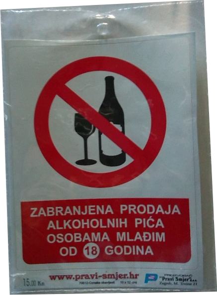 Naljepnica " Zabrana prodaje i konzumacije alkoholnih pića i cigareta"