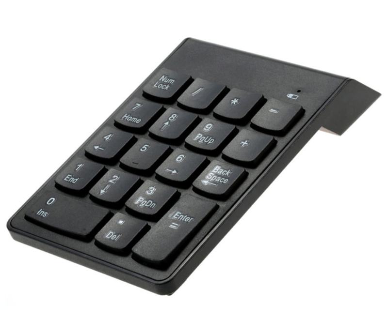 Bežična USB numerička tipkovnica. Odličan dodatak nepotpunim tipkovnicama i prijenosnim računalima s dodatnom numeričkom tipkovnicom. Alat je izuzetno jednostavan za korištenje, ne zahtijeva dodatnu konfiguraciju. Jednostavno povežite USB adapter na bilo koji USB priključak na vašem računalu da biste se povezali s tipkovnicom putem Bluetooth -a. Veliki i udobni ključevi za meke šetnje pružaju brz i udoban posao.