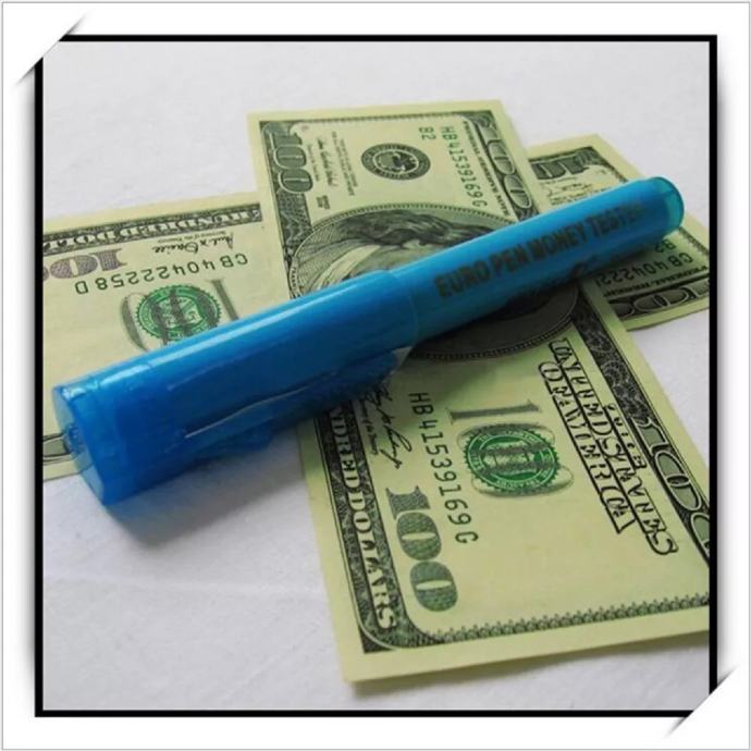 Olovka za provjeru lažnih Eura i drugih novčanica. Ne dozvolite sebi da vam netko uvali krivotvorene Eure. Brza i laka upotreba. Male dimenzije. Novo zapakirano.