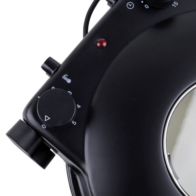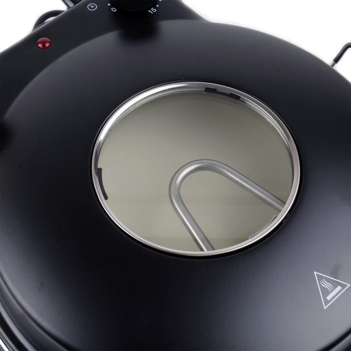 Za optimalno postavljanje postupka pečenja i pregled svih parametara, pizzeria, pored termostata, također je opremljena 30-minutnim vremenskim i signalnim svjetlom. Osim toga, postupak pečenja možete provjeriti u bilo kojem trenutku kroz prozor za gledanje bez potrebe za otvaranjem uređaja za pizzu.