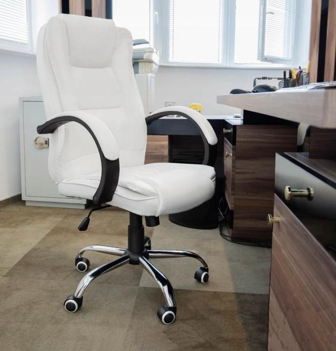 Podesiva rotirajuća kožna uredska stolica bijela - mekani kotači