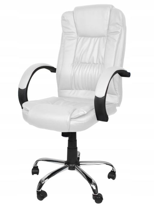 Uredska fotelji koja se uklapa u savršeno sjedenje, odjevena u meku eko kožu. Dizajniran da pruži maksimalnu udobnost, čak i nakon nekoliko sati sjedenja. Pored toga, fotelje ima dvostruki sloj spužve, što značajno povećava udobnost upotrebe. Visoka, ugrađena jastuka i odgovarajuća profilacija pružaju funkcionalnost i podršku glave, a široko sjedalo omogućava nekoliko sati rada. Stihovi za ruke su mekani i udobni, smanjujući bol u laktovima i utovarivanje kralježnice.