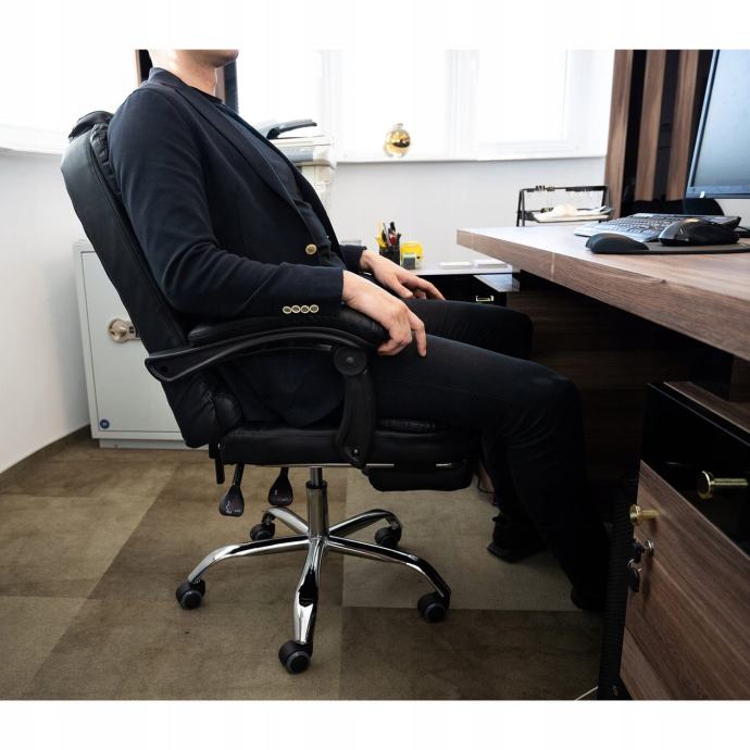 Uredska stolica koja se u potpunosti prilagođava silueti sjedeće osobe, tapecirana u meku eko kožu. Profiliran je pružiti maksimalnu udobnost čak i nakon sjedenja. Pored toga, stolica ima dvostruki sloj gljiva, što značajno povećava udobnost upotrebe. Visoka, ugrađena jastuka i odgovarajuća profilacija pružaju funkcionalnost i podršku glave, a široko sjedalo omogućava nekoliko sati rada. Stihovi za ruke su mekani i udobni, smanjujući bol u laktu i punjenje kralježnice.