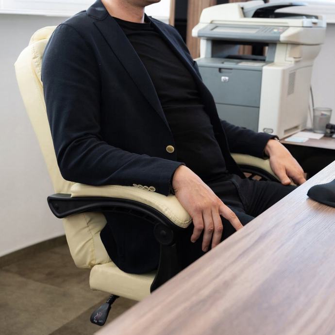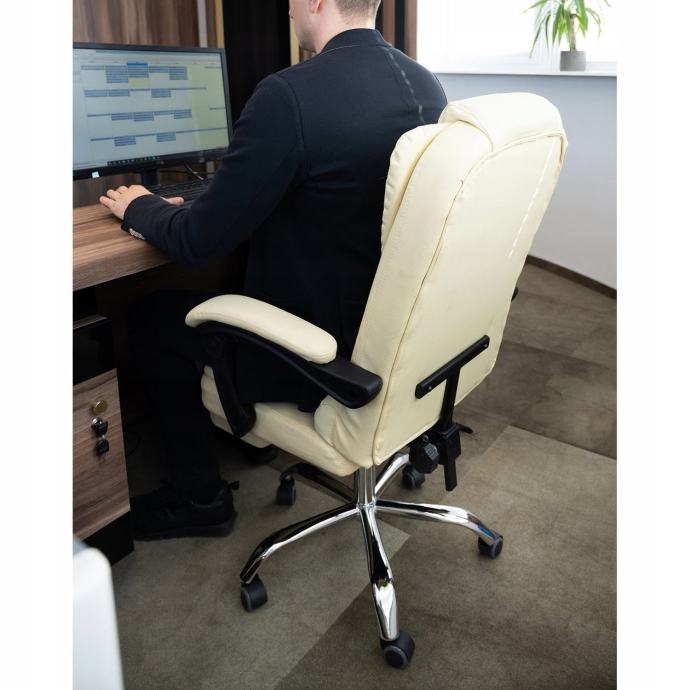 Uredska stolica koja se u potpunosti prilagođava silueti sjedeće osobe, tapecirana u meku eko kožu. Profiliran je pružiti maksimalnu udobnost, čak i nakon sjedenja. Pored toga, stolica ima dvostruki sloj gljiva, što značajno povećava udobnost upotrebe. Visoka, ugrađena jastuka i odgovarajuća profilacija pružaju funkcionalnost i podršku glave, a široko sjedalo omogućava nekoliko sati rada. Stihovi za ruke su mekani i udobni, smanjujući bol u laktu i punjenje kralježnice.