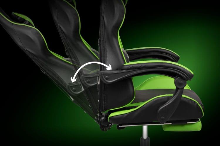 Podesiva tapecirana računalna stolica za igranje s nogama GX-150 crno-zelena