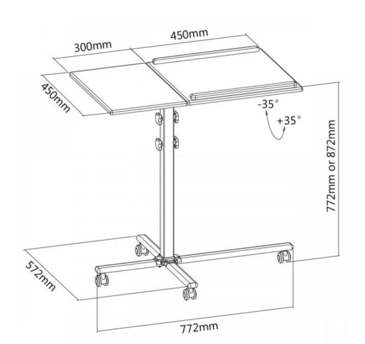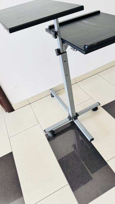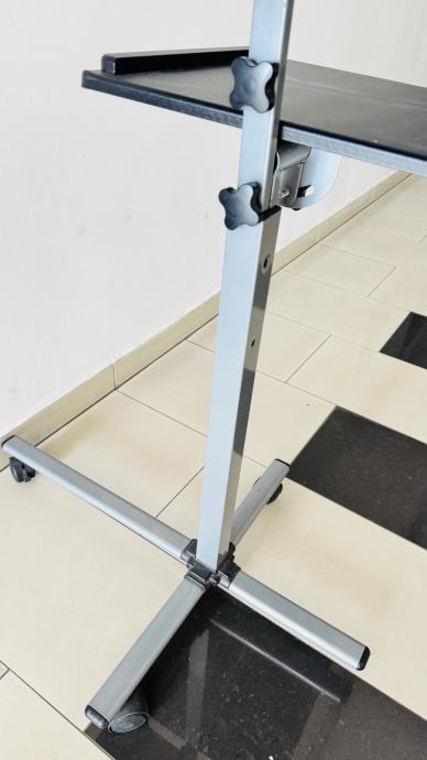 Odlični stalak za prezentacije. Može služiti kao pomoćni stol za projektor. Svi površine su podešavaju. Velika priča može biti s nagibom za udobni tad na laptopu.