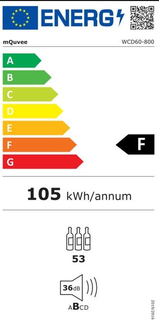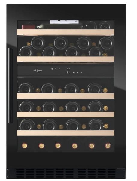 Podpultni ugradbeni hladnjak za vino WCD60FGB-800 je savršeno energetski učinkovit hladnjak za vino mQuvée s elegantnom crnom površinom od punog stakla.