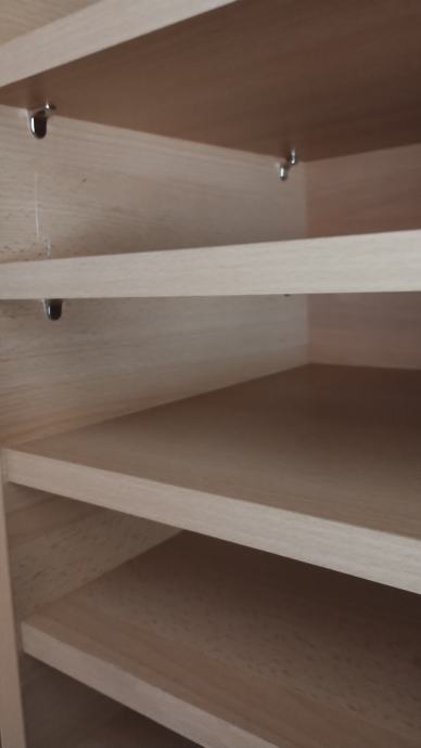 Prodajem 9 regala (visina 220 cm, širina 50 cm), razmak između polica je podesiv, idealno za organizaciju dokumenata, papira, knjiga, mapa ili drugog uredskog materijala. Izrađeni su od drvenog materijala u svijetloj boji. Police su postavljene na metalnim nosačima. Odlično funkcionalno rješenje za uredski prostor ili dom gdje je potrebno pohraniti veću količinu papira ili mapa.