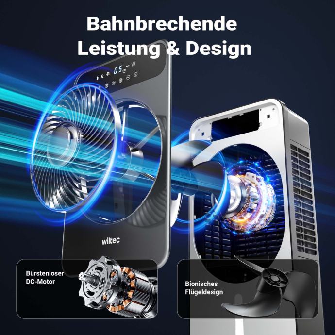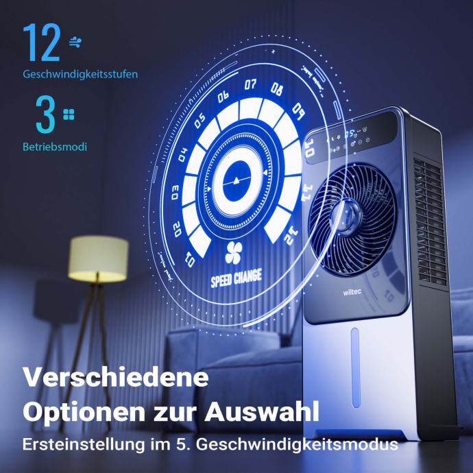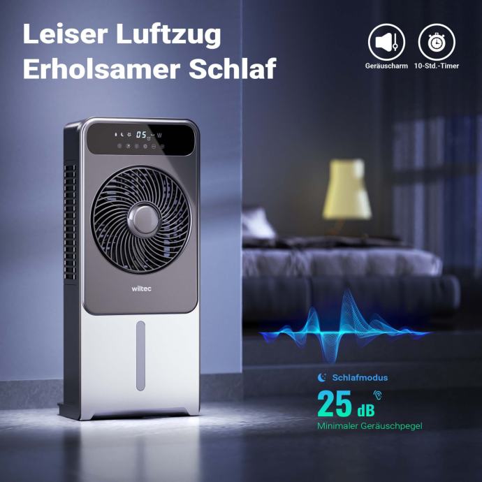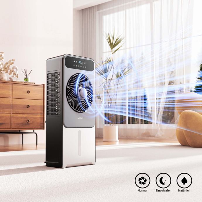 U vrućim danima uživajte u osvježavajućem hlađenju ventilatora Wiltec. Zahvaljujući svojoj inovativnoj funkcionalnosti, on kombinira snažnu ventilaciju s učinkovitim finim sustavom prskanja koji vam nudi ugodan povjetarac i hladno opuštanje.