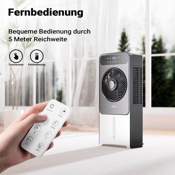 Otkrijte osvježavajuću hladnoću s ventilatorom Wiltec -a i finim sustavom prskanja. Kombinira snažnu ventilaciju s inovativnom tehnologijom raspršivanja kako bi stvorio ugodnu unutarnju klimu.