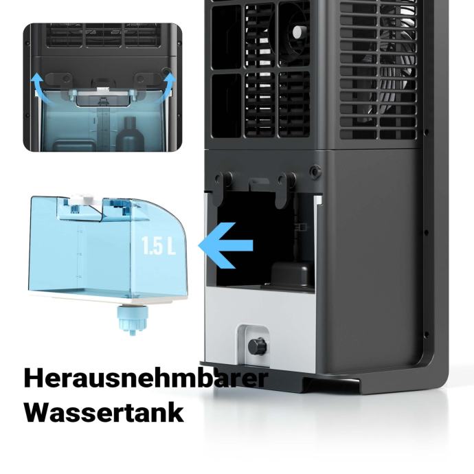 1,5-litreni spremnik ventilatora pruža dugoročno hlađenje. Ovladajte ventilator s daljinskim upravljačem ili integriranim zaslonom osjetljivim na dodir i prilagodite postavke bez poteškoća.