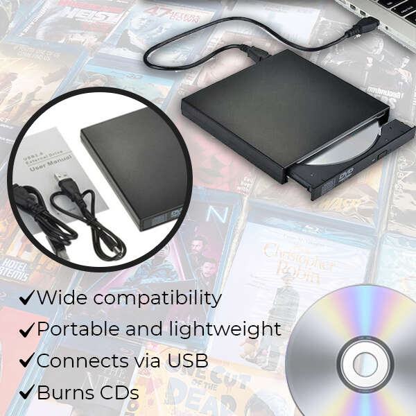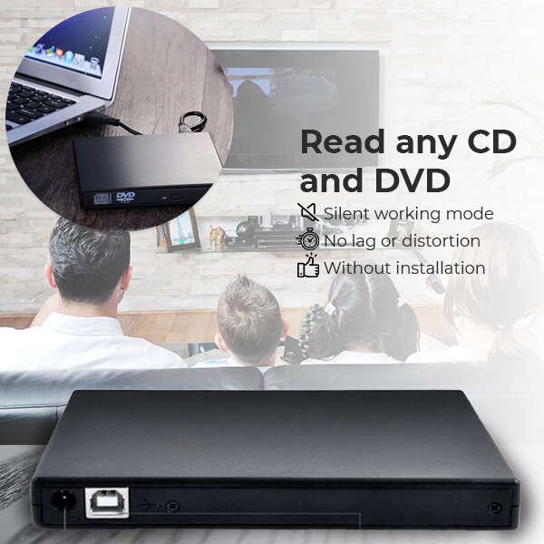 Mogućnost podržavanja CDS -a i DVD -a kroz vanjski pogon rješenje je koje će podržati upotrebu uređaja koji nisu opremljeni takvom opremom. To također može biti dodatni modul za čitanje i pisanje diskova u slučaju potrebe za brzim, glatkim i ekonomski povoljnim širenjem radne površine ili prijenosnog računala. Vanjski pogon omogućuje vam čitanje CDS -a i DVD -a i snimanja CD -ova.