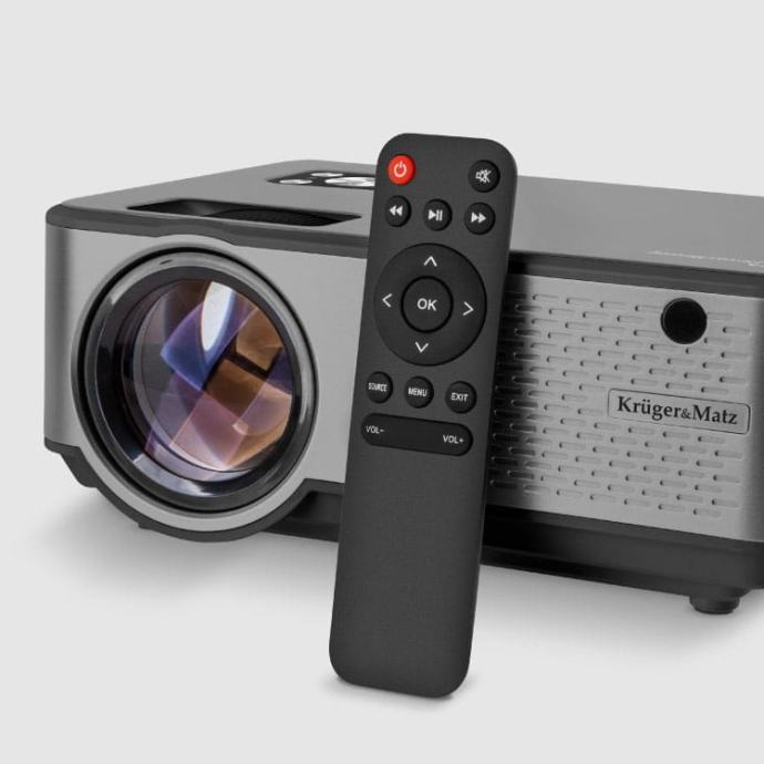 Projektor Kruger & Matz V-LED60 također je prikladan za upotrebu. Komplet uključuje daljinski upravljač, zahvaljujući kojem možete odabrati izvor reprodukcije ili prilagoditi glasnoću bez ustajanja s kauča.