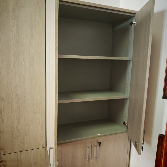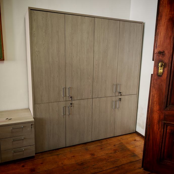 - ormar za registratore, i donja i gornja vrata sa bravom, ukupno 2 ormara koji su okvirom spojeni u jedan. Realno se prodaju u jednoj cjelini, ali su ukupno 2 kom. Dimenzije sa okvirom, 90x40xH197,30cm. Cijena jednog, bez pdv-a, 260€.
