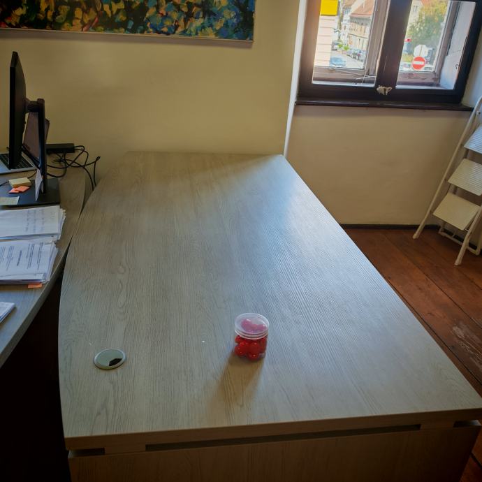 - radni stol, GO30018, zaobljeni, dimenzije 200x103x75,6 cm, tempus 36 mm, 2 kom. Cijena bez pdv-a, 235,00€