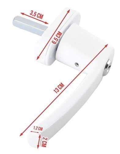 Specifikacija boja: bijela, vanjske dimenzije ručke (duljina / širina): 13/2 cm, težina: 250 g, komplet sadrži: ručku, zaključavanje, tipke.