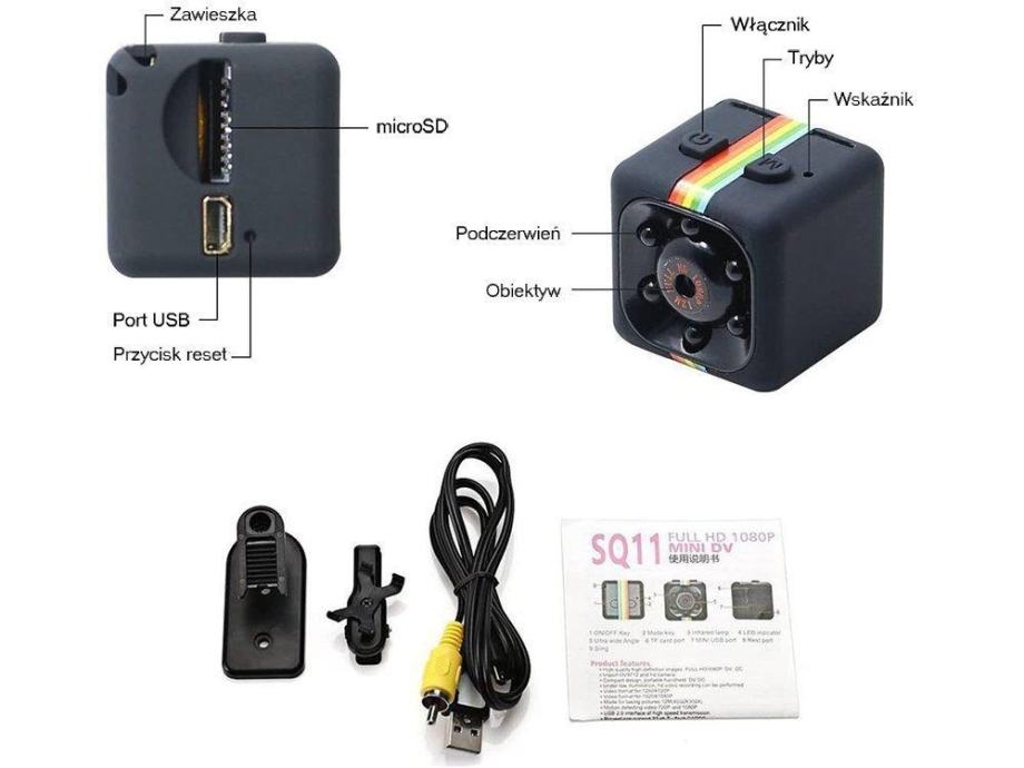 Mala veličina kamere idealna je za internetske lekcije, konferencije itd. Kamera ima ugrađeni mikrofon, tako da nam ne treba vanjski mikrofon. Snimanje visoke kvalitete pružit će nam jasnu vidljivost tijekom internetskih sastanaka. Zahvaljujući isječcima koji su u kompletu, kamera se može pričvrstiti na odjeću, što će nam omogućiti pucanje izvan kuće. Maksimalna veličina microSD kartice je 32 GB. Kameru pokreće USB kabel koji je uključen u komplet.