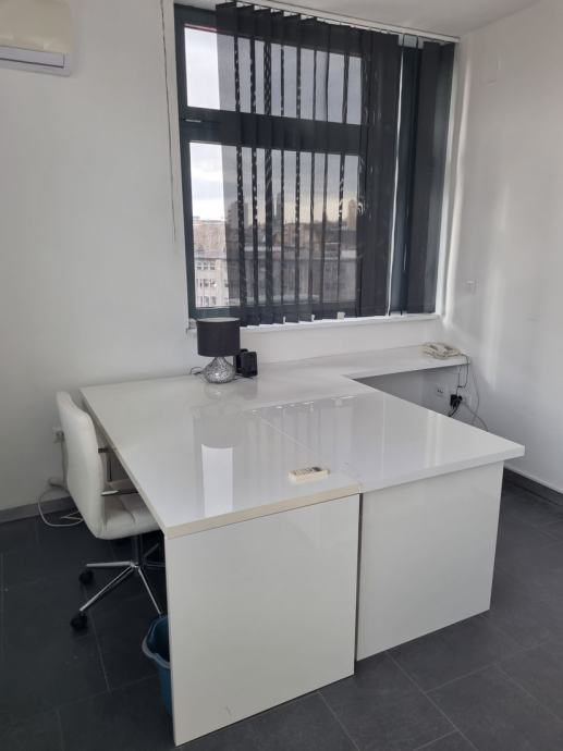 Radni stol, drveni, bijela boja, visoki sjaj. Dimenzije 188x80x80 cm,
