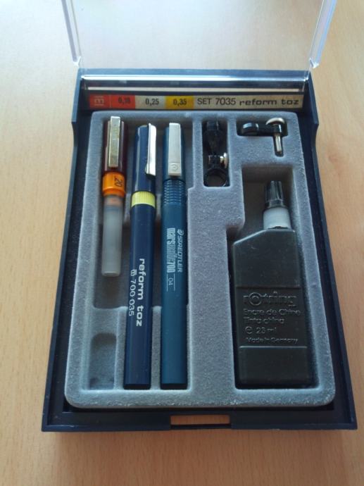 Prodajem set rapidografa: 0,2mm, 0,35mm, 0,5mm, dvije drške + nastavci za šestar i crna tinta.
