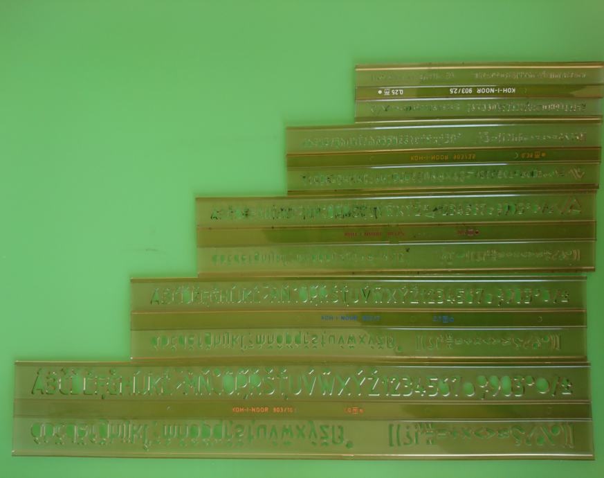 - set od 5 ravnala sa šablonama slova: 30 kn