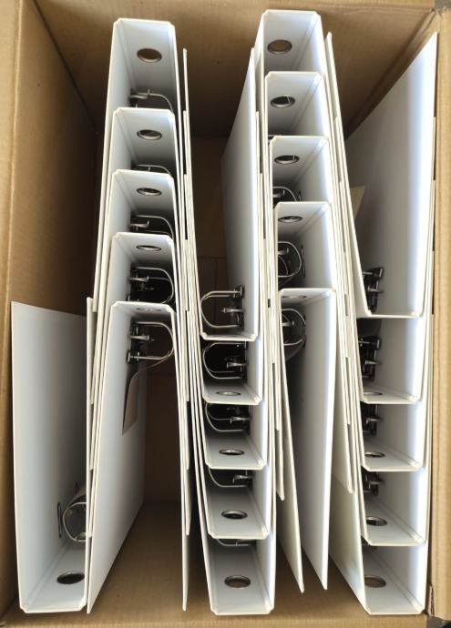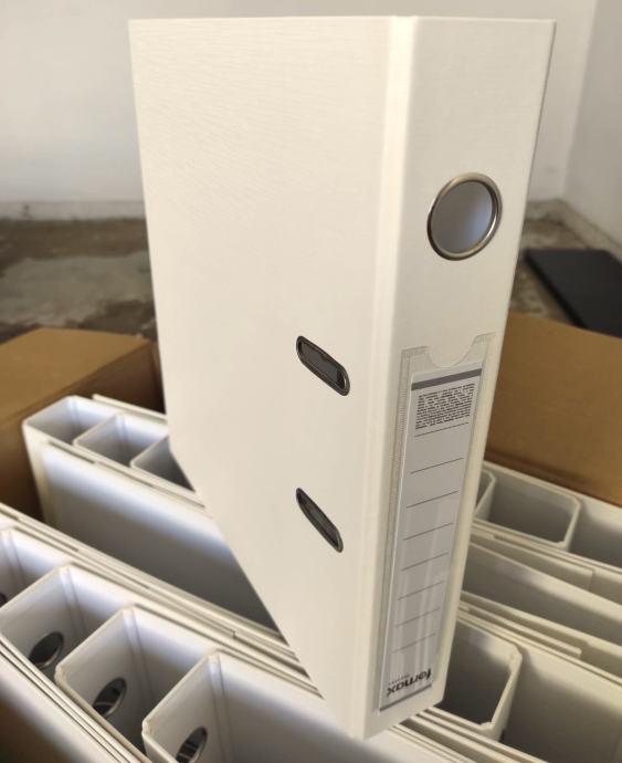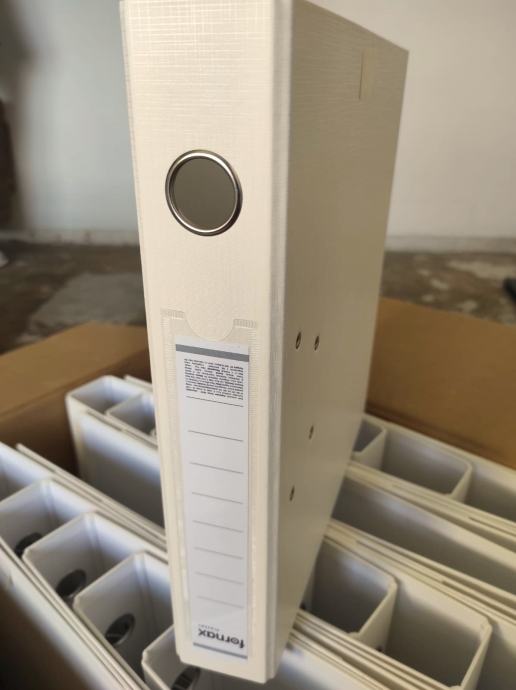 NOVI registratori/ fascikli formata A4, tvrdi uski ( 5 cm ), bijeli, sa otklopnim mehanizmom i stoperom, proizvođač "Fornax".